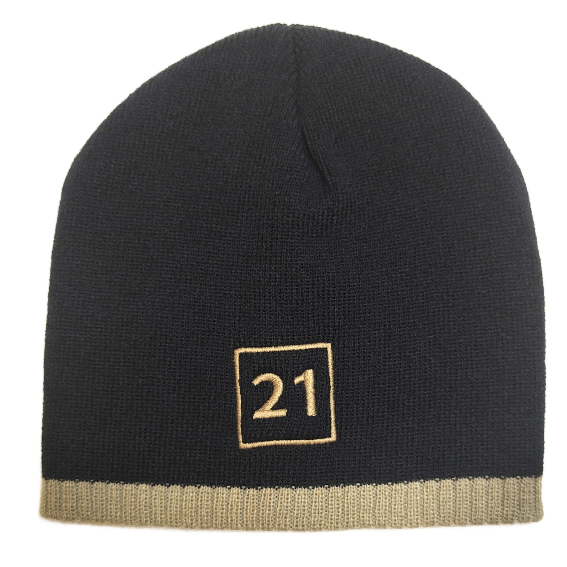 21 Beanie Donker Blauw - Beige